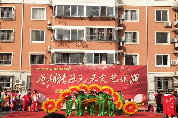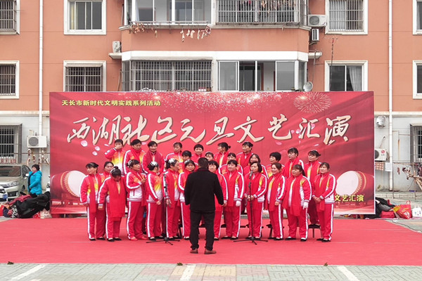 為豐富西湖社區居民的精神文化生活,感受新年的歡樂氣氛。1月1日下午,由天長街道西湖社區“聯合黨委”主辦,天長街道新時代文明實踐站、西湖社區“微愛”志愿服務隊、西湖社區友英志愿舞蹈隊、西湖社區錢灑子志愿服務隊承辦,一場以“迎新年·賀新春”為主題的慶元旦文藝匯演在天長街道西湖社區文明實踐務廣場拉開序幕。此次文藝匯演的所有表演節目都是由社區各只志愿服務隊自編自演的,各只隊伍的傾情表演給居民帶來了新年祝福和歡樂的笑聲。