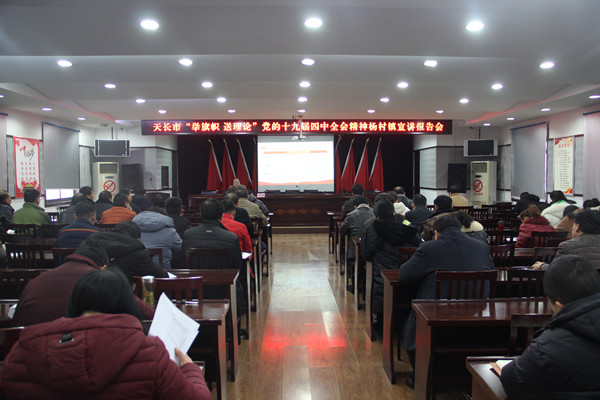 為學(xué)習(xí)好、宣傳好、貫徹好黨的十九屆四中全會(huì)精神,進(jìn)一步營(yíng)造濃厚的學(xué)習(xí)宣傳氛圍,1月9日上午,天長(zhǎng)市“舉旗幟、送理論”黨的十九屆四中全會(huì)精神宣講活動(dòng)走進(jìn)楊村鎮(zhèn)。鎮(zhèn)全體機(jī)關(guān)工作人員、村和社區(qū)全體干部、鎮(zhèn)直單位負(fù)責(zé)人、各基層支部書記、組織委員共計(jì)100余人,聆聽了市委宣講團(tuán)成員林春彬同志所作的黨的十九屆四中全會(huì)精神宣講。