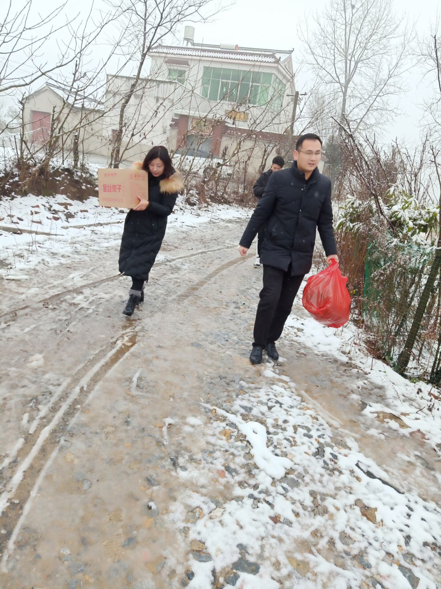 村干們帶著慰問品冒著雨雪天氣,走訪五保老人,與老人們促膝長談,了解他們的生活起居情況和精神狀態。叮囑老人們要注意生活起居,特別是做好防寒保暖措施,讓他們過一個舒適、溫馨的暖冬,使他們感受到村委會的關懷。