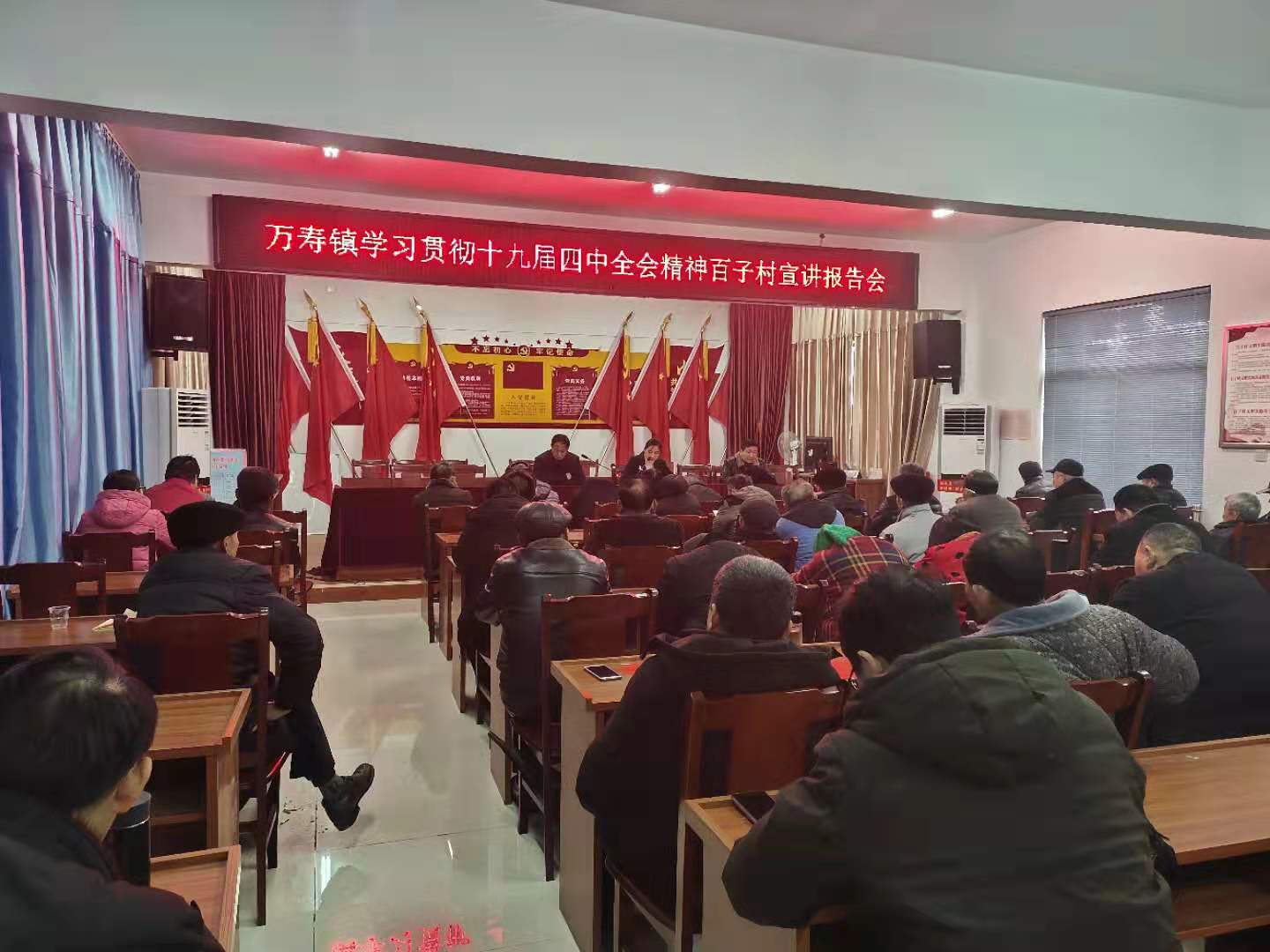 2020年1月10日,百子村組織全體黨員參加萬壽鎮學習貫徹十九屆四中全會精神百子村宣講報告會,鎮組織部部長錢海芳作了宣講報告,百子村黨總支書記王舒成主持本次會議。