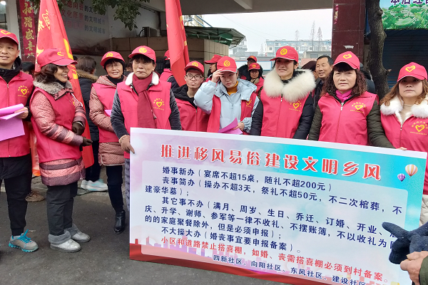 自銅城鎮開展“推進移風易俗 建設文明鄉風”活動以來,社區立即行動,登門入戶進行宣傳。為加大宣傳力度、增強宣傳效果,不斷提高居民移風易俗意識。2020年1月17日上午,適逢銅城鎮逢集,銅城鎮四個城市社區組成聯合宣傳隊,上街散發宣傳單,宣傳移風易俗建設文明鄉風。此次宣傳活動受到廣大居民的一致好評。
