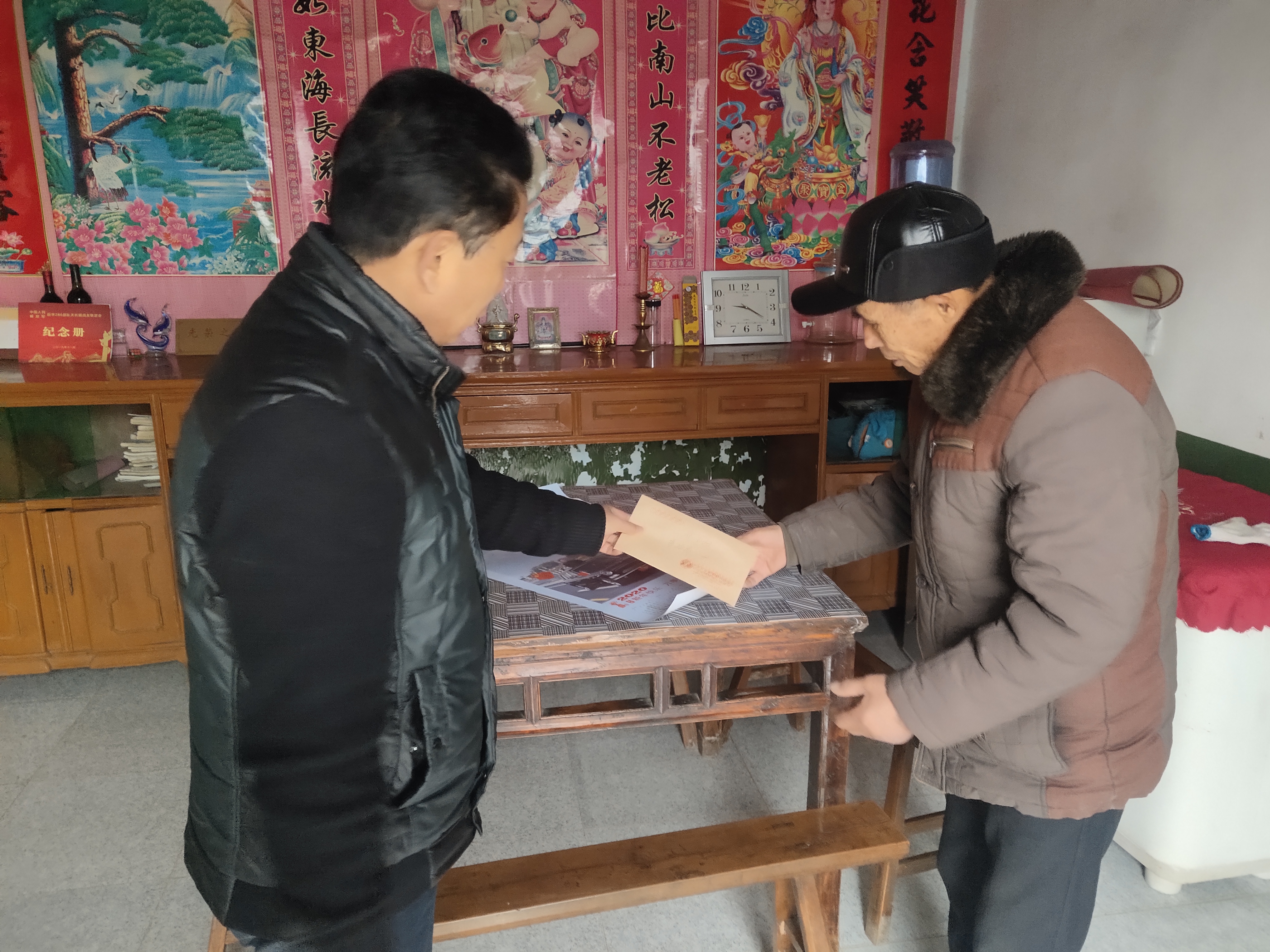 臨近年終,余莊村黨總支書記于懷同慰問重病退伍軍人李福成,并送上年畫,叮囑其注意保重身體。
