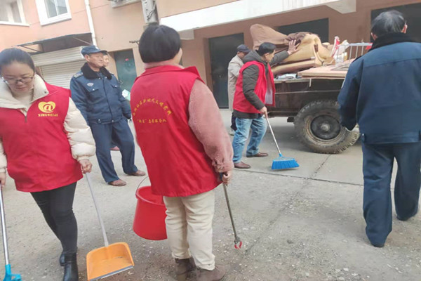 活動過程中,黨員志愿者們有的手拿掃帚,清掃垃圾;有的細心地將路邊衛生死角內的污物清理出來,有的對綠化帶里的雜草和枯枝葉及單元樓棟的牛皮癬進行細致的鏟除,還有的把樓道里堆放的大件垃圾,一車又一車地拉到垃圾箱旁堆放點,然后大家再齊心協力把大件垃圾清理裝上垃圾車進行及時清運,有效改善轄區內的環境衛生,給轄區居民營造了一個良好的衛生環境。每清理一處黨員志愿者還積極進行宣傳,號召居民養成愛護環境的好習慣,主動制止別人亂堆亂放、亂扔垃圾等行為,為我市“三城聯創”工作貢獻一份力量。
