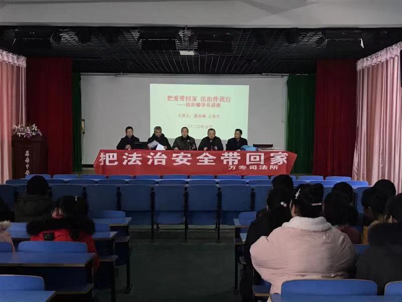 元月19日上午,萬壽初中邀請學校法治輔導員、萬壽鎮群眾工作站站長董連城萬壽鎮人民調解主任王春生同志給全校同學進行法律知識講座。