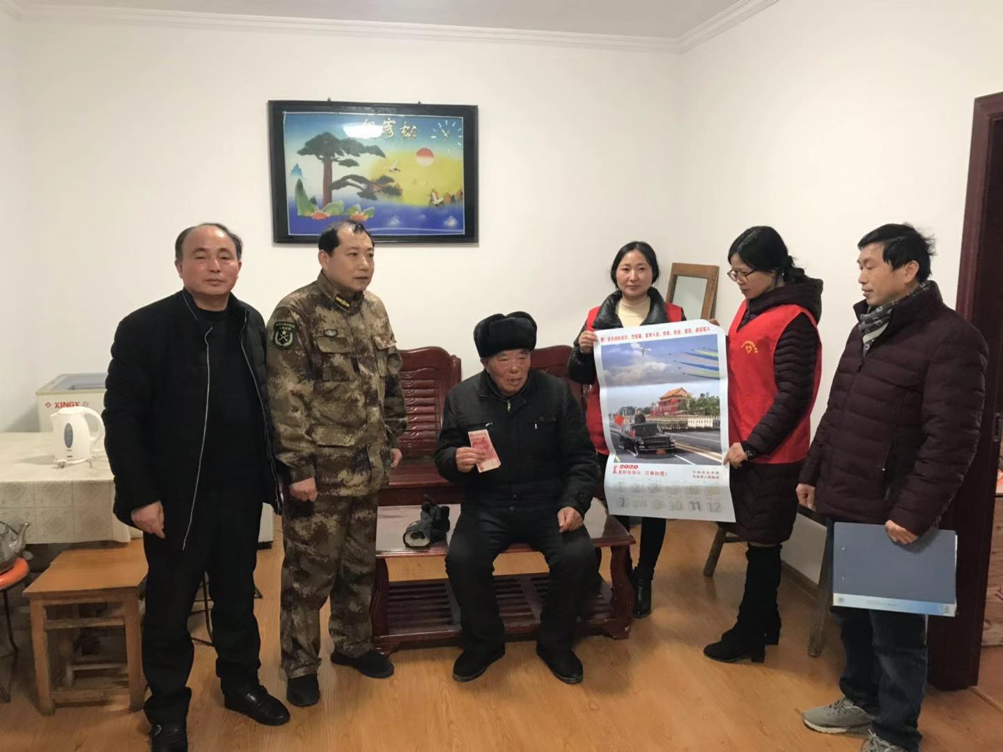 為進一步做好退役軍人春節前慰問工作,營造良好的擁軍氛圍,1月22日,張鋪鎮民政辦領導到八墩村退役軍人沈長濤家發放春節慰問金和年畫,首先詳細詢問了解他們夫妻的身體狀況,希望他們能照顧好自己的身體,幸福平安的度過晚年。最后向他送上新春的祝福,把黨和政府的關懷與溫暖送到退役軍人的手中,以感謝他為國家、為人民做出的貢獻。沈長濤表達了對黨和政府的感謝,表示將一如既往地支持黨和政府的工作,為八墩村的發展貢獻自己的力量。