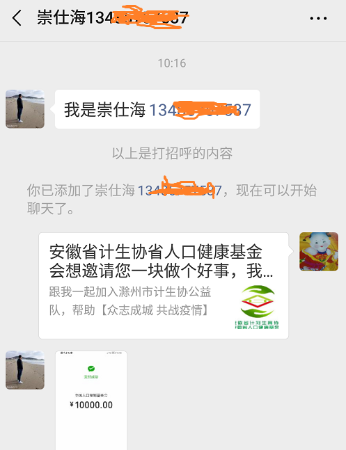 新年伊始,一場突如其來的新型冠狀病毒引起的肺炎疫情,打破了一年一度萬家團圓歡樂氛圍,疫情前線,防疫物資嚴重匱乏,多家定點醫院物資告急,社會捐助源源不斷。崇仕海第一時間計劃購買口罩等防疫物資捐獻疫區,苦于沒有適合的貨源和運輸途徑,只有向社區工作人員咨詢捐贈途徑。在社區工作人員的引導下,自發在安徽滁州市計生協省人口健康基金捐獻一萬元。