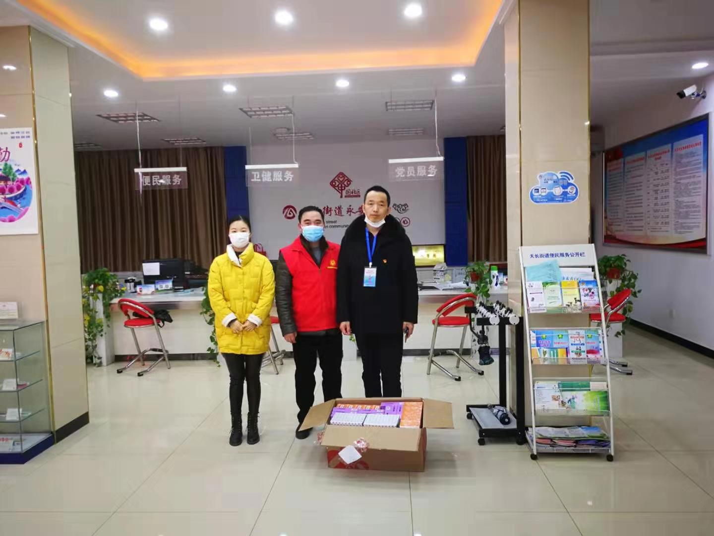 “您好,我想為社區捐贈一點消毒用品,東西不多,但希望能派上用場。你們戰斗在一線,一定要做好自身的防護工作,謝謝你們了!”2月11日,天長市衛校門診醫生王文銀、社區居民周銀壽向天長街道永安社區捐贈10箱84消毒液和具有免疫功能的貞芪扶正等防疫物資藥品,助力社區新冠肺炎疫情防控,在冰冷嚴峻的疫情面前,用愛心送來了春天般的溫暖。