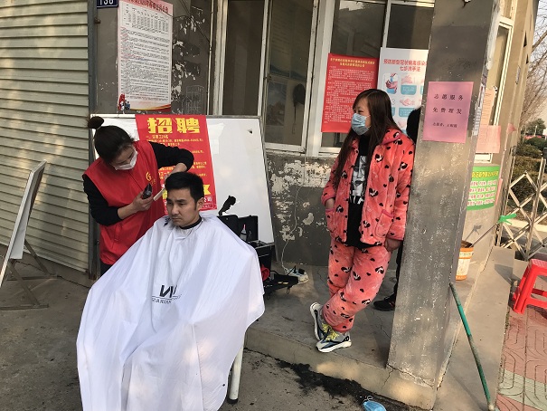 聽聞小區(qū)門衛(wèi)處有免費(fèi)理發(fā)點(diǎn)后,附近需要理發(fā)的居民紛紛前往理發(fā)點(diǎn)理發(fā)。王文才、王銀霞夫妻二人配合村疫情防控工作者對(duì)前來理發(fā)的居民逐個(gè)、分批、有序的進(jìn)行安排,做到防護(hù)、服務(wù)兩不誤,僅2月21日一天,夫妻倆就服務(wù)30余名居民,沒有片刻休息。