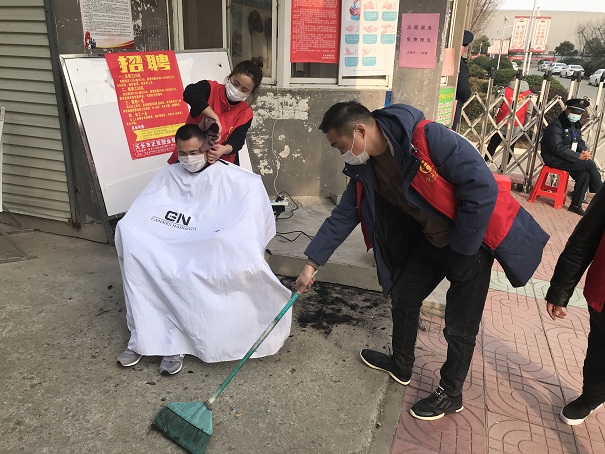 為了服務(wù)疫情防控期間更多人的理發(fā),夫妻倆還在志愿者微信群里發(fā)出通知,從22日起,小夫妻倆理發(fā)服務(wù)不限于本小區(qū),凡有需要的附近群眾看到通知均可到他們的夫妻理發(fā)點(diǎn)理發(fā)。