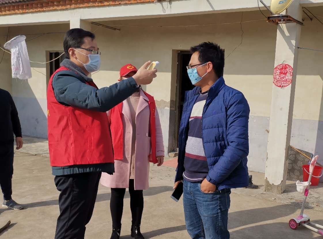 2020年2月20日,五燈村志愿者入戶為返鄉隔離人員進行體溫測量,并為隔離期滿的戶送去隔離解除通知書。