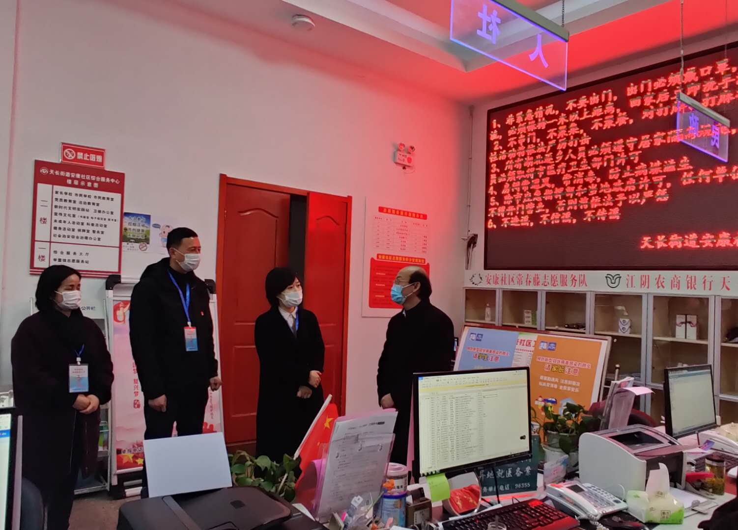 2月29日上午,天長市常務(wù)副市長張宏生深入安康社區(qū)現(xiàn)場檢查指導(dǎo)社區(qū)開展新冠肺炎疫情防控工作。認(rèn)真詳細(xì)的詢問了安康社區(qū)疫情期間組織的逐戶逐人排查、外來人員登記及志愿者卡口安排等工作的落實(shí)情況。
