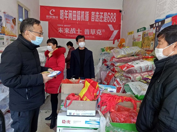 3月8日,石梁鎮(zhèn)農(nóng)技人員在種子零售店檢查指導農(nóng)民購買稻種。