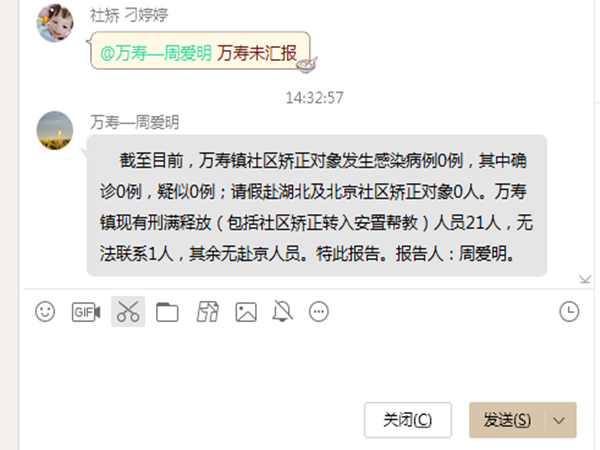 全面周密排查,掌控矯正對象情況。為全面掌控社區矯正對象在疫情防控期間的情況,萬壽司法所嚴格落實疫情日報告制度,每天詳細統計社區矯正對象身體健康情況,近期是否前往疫區,是否有密切接觸史,嚴格審核請假人員的外出事由、外出時間、外出地點及交通方式等,并向司法局社區矯正中心報告,力求掌握信息客觀、真實、準確、及時。要求矯正對象每天微信報告個人情況,主要包括是否外出以及身體狀況、心理狀況等。