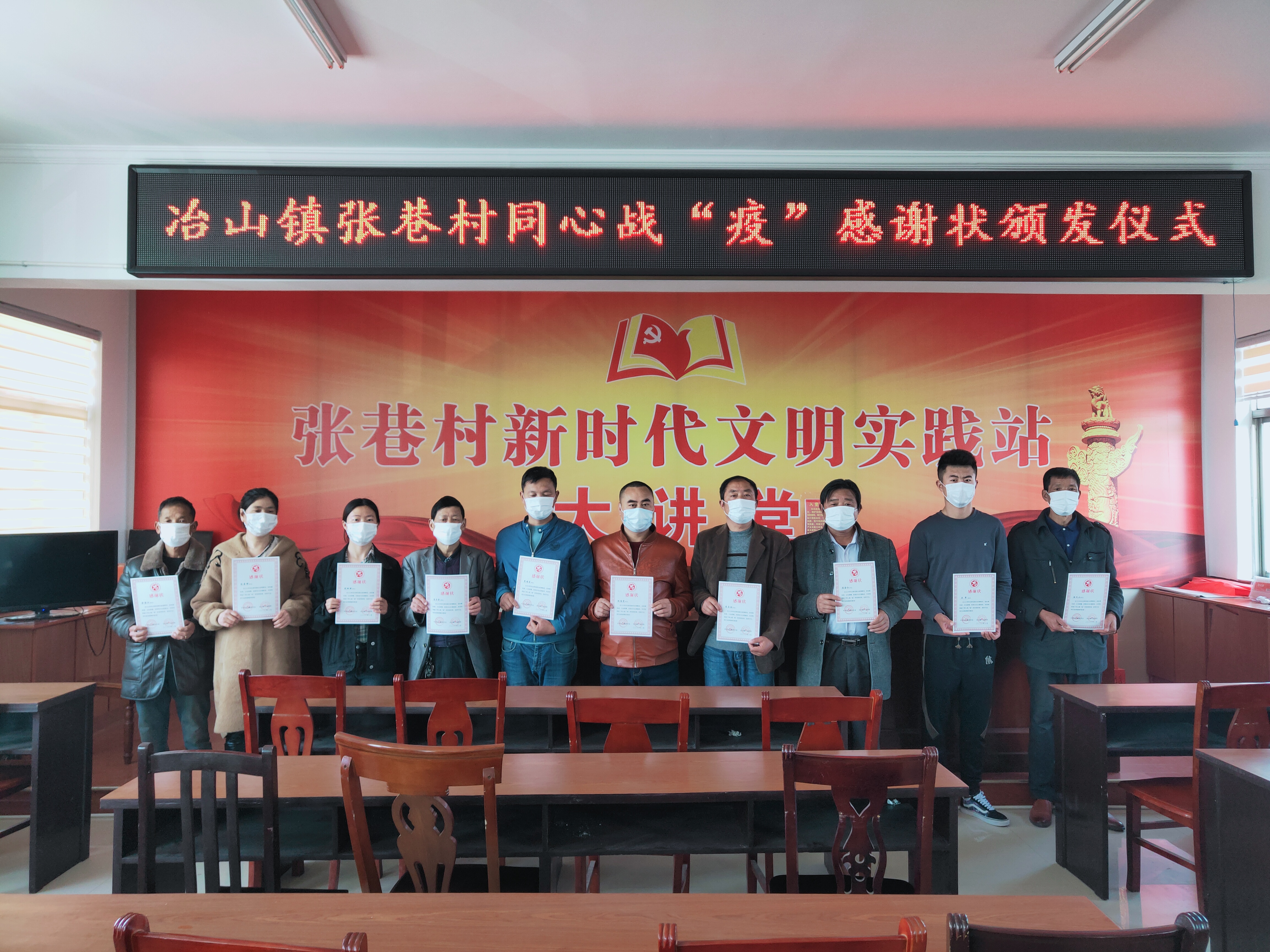 324日,張巷村向所有參與疫情防控工作的志愿者們頒發“感謝狀”,并對他們在這次抗擊新冠肺炎疫情所作出的貢獻表示衷心的感謝。