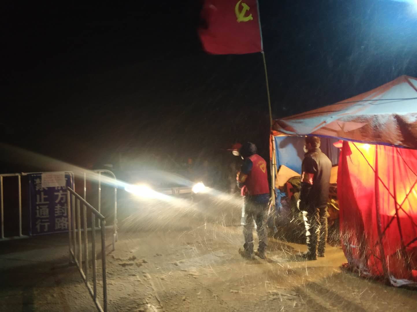 草洲村卡點志愿者24小時值守,風雪無阻,為村民的安全筑起一道堅固的生命的防線