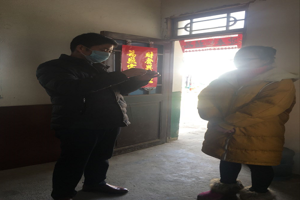2020年3月2日,我村村醫駱醫生為外地回鄉隔離人員定期上門量體溫,防止異常發生。疫情防控形勢嚴峻,村醫堅決落實不漏一人,對回鄉人員全時監控,一天三次上門量體溫。
