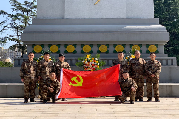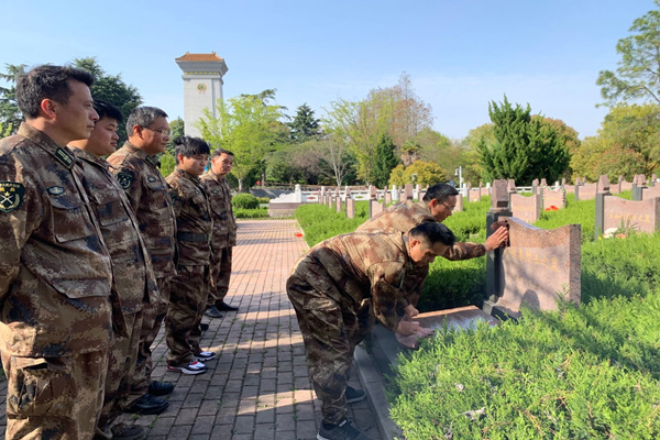 在烈士墓前,全體官兵莊嚴肅立,大家懷著沉重的心情默哀三分鐘,表達對革命先烈的哀思。黨員代表向革命烈士敬獻了花圈,全體人員向烈士紀念碑三鞠躬,并聆聽了革命烈士的生平事跡,重溫了入黨誓詞,瞻仰了革命烈士紀念碑。隨后,大家來到一個個烈士墓碑前,小心清理周圍的雜草,擦拭墓碑上的灰塵。近一個小時下來,所有的烈士墓碑都被擦拭得干干凈凈,光亮照人。民兵們用實際行動表達對烈士的崇敬和緬懷之情,同時為社會各界悼念革命先烈提供一個整潔的環境。