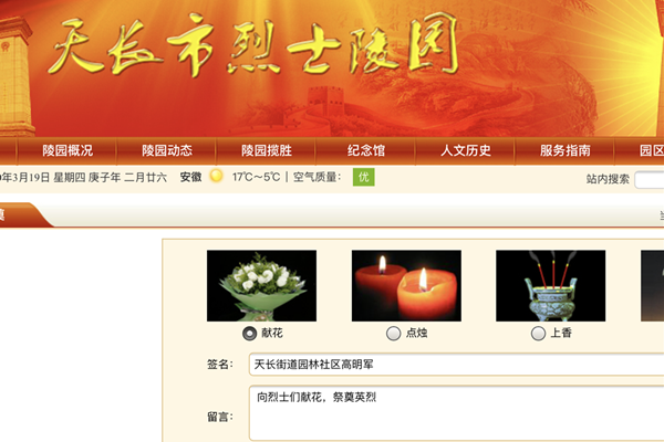 園林社區黨總支發起“關于清明節緬懷英烈,文明祭掃”的倡議書,全體黨員積極響應,第一時間登錄“天長市烈士陵園網”深刻緬懷革命先輩的豐功偉績并敬獻鮮花,表達對革命先烈的敬仰之情。