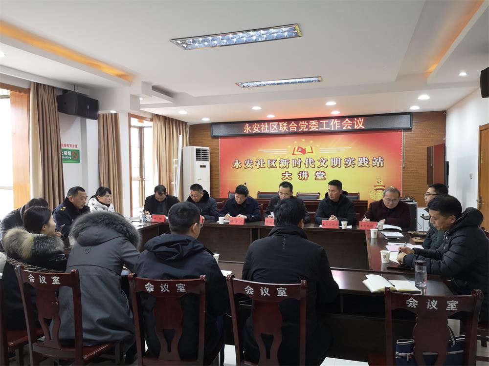 1月13日下午,永安社區組織聯合黨委成員單位市城管執法局、市農業農村局、市科協、市生態環境局召開聯合黨委工作會議,副市長陳學文,天長街道黨工委委員翁玉基參加了會議。