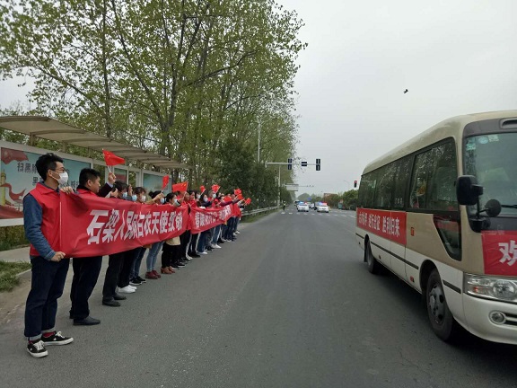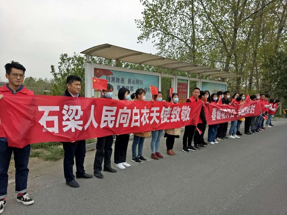 寒冬出征不畏難,白衣執甲今朝歸。他(她)們是天長人的驕傲,這個春天,天長也因他們更加美麗。為熱烈歡迎英雄榮歸,考慮到時間倉促,只有短短10秒左右的時間,但石梁鎮團委也經過了精心組織,安排了三十多名志愿者代表石梁人民夾道歡迎白衣英雄們,向他們表達了最崇高的敬意。
