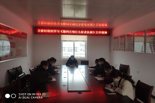 4月7日,王橋村組織學習《滁州市文明行為促進條例》。會議由瞿慶華書記主持,全體村干部參加。