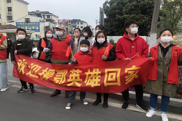 沃公社區橄欖樹志愿服務隊的志愿者也參與了迎接英雄回家的活動,與市民群眾一起“歡迎英雄回家”,沿途的機動車也紛紛鳴笛致意、為英雄歡呼,白衣戰士們揮手回應家鄉人的問候。