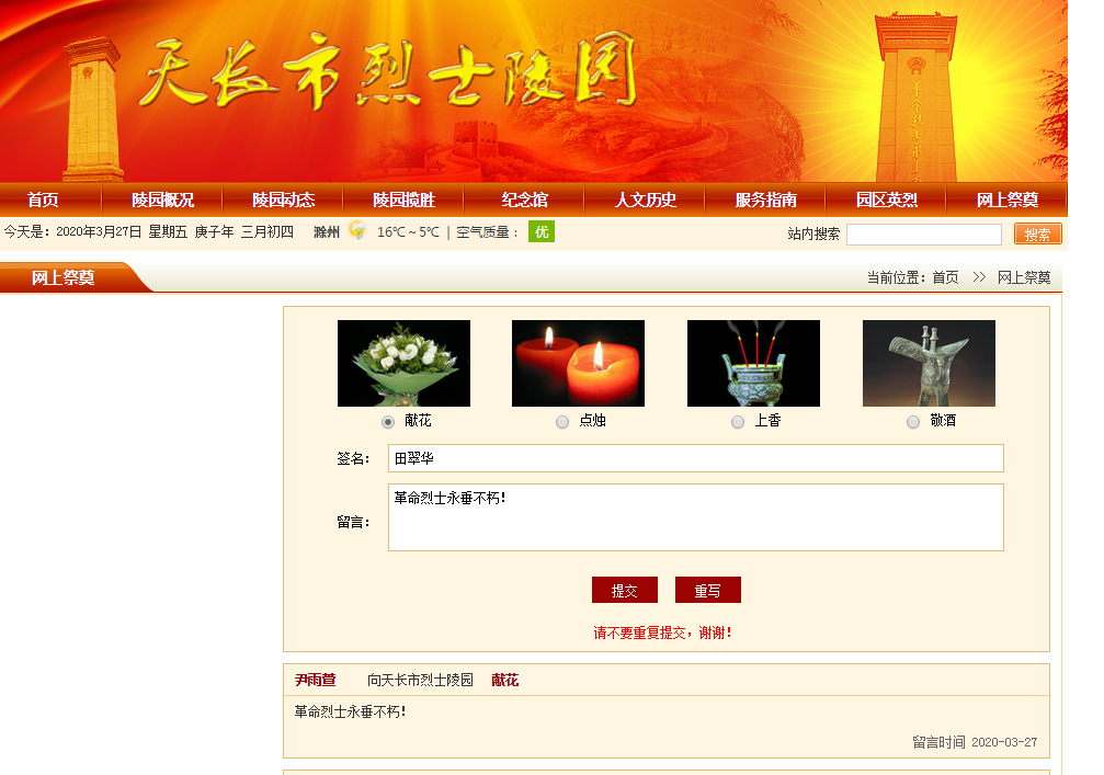 社區(qū)干部登錄“網(wǎng)上祭英烈”活動(dòng)專(zhuān)題網(wǎng)頁(yè),以鞠躬獻(xiàn)花、抒寫(xiě)感言寄語(yǔ)、學(xué)習(xí)英模事跡等方式進(jìn)行網(wǎng)上祭掃,寄托對(duì)先烈們的深切哀思和崇高敬意。