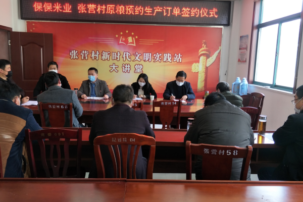 2020年3月14日下午,在二樓會議室召開倮倮米業與張營村原糧預約生產訂單簽約儀式,汊澗鎮政府組織部部長許從慶、倮倮米業總經理吳太兵和張營村黨總支書記楊玉成及張營村種植大戶成員參加了會議,會議由楊玉成書記主持。會上倮倮米業總經理吳太兵就產品銷售等向大家作了介紹,并就糧食品種、施肥等方面的問題和農戶作了交流,為大戶解決了后顧之憂。