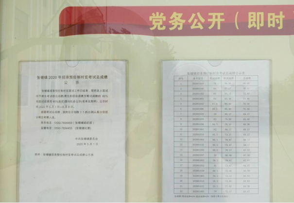張鋪鎮2020年招錄預任制村官的筆試工作已結束,現將筆試成績進行公示。
