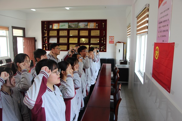 活動在嘹亮的國歌聲中拉開序幕,新團(tuán)員們的臉上都洋溢著開心、激動的笑容。7名老團(tuán)員為10名新團(tuán)員佩戴上團(tuán)徽,在鮮艷的團(tuán)旗前,所有隊(duì)員鄭重地舉起右拳莊嚴(yán)宣誓。團(tuán)員張倩代表老團(tuán)員發(fā)言,她說,入團(tuán)不是一個形式,團(tuán)徽也不只是標(biāo)志,應(yīng)該成為自己學(xué)習(xí)和工作的動力。青春易逝,時光難留,要珍惜三年初中生活,不懈怠,加油干,不斷進(jìn)取。董光云代表新團(tuán)員發(fā)言,她說,加入團(tuán)組織很激動和興奮,今后將更加嚴(yán)格要求自己,不忘入團(tuán)誓詞。汪桂玉對新團(tuán)員表示祝賀,他說,入團(tuán)是人生的大事和人生中的亮點(diǎn),全體團(tuán)員要牢記入團(tuán)誓詞。團(tuán)員是黨員的后備軍,一定要保持團(tuán)組織的純潔性和先進(jìn)性,團(tuán)員要對自己提出更高的要求,今年疫情中許多黨員逆行而上、沖鋒在前,成為國家的中流砥柱。團(tuán)員要多學(xué)黨團(tuán)知識,純潔自己的思想,約束并規(guī)范自己的言行,始終聽黨指揮。