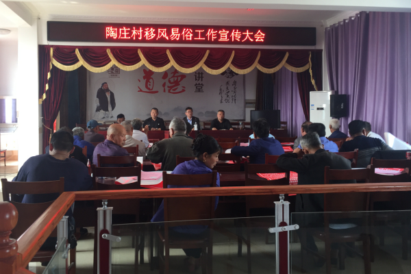 5月17日,陶莊村利用周日假期時(shí)間,通知了轄區(qū)內(nèi)的34個(gè)村民組代表、村民小組長(zhǎng)在村部的會(huì)議室召開了關(guān)于移風(fēng)易俗工作宣傳會(huì)的重要內(nèi)容。