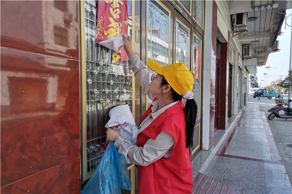 “你好,請你盡快把這些閑置的磚頭運走,這些磚頭雜亂無章的堆放在房前,既阻礙道路交通,還會影響咱們街道的顏值!”在鄭集鎮向陽社區,鎮新時代文明實踐志愿者正在對群眾開展文明勸導,幫忙清理街道兩側私搭亂建、侵占道路的雜物、垃圾。雖然天氣炎熱,但參與人員個個都全心投入。
