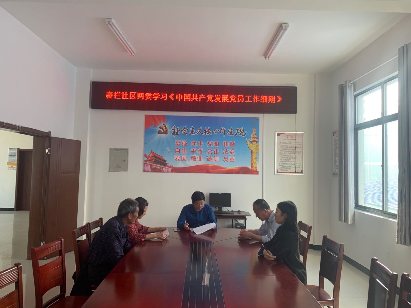 5月10日下午,秦欄社區兩委重點學習了《中國共產黨發展黨員工作細則》。