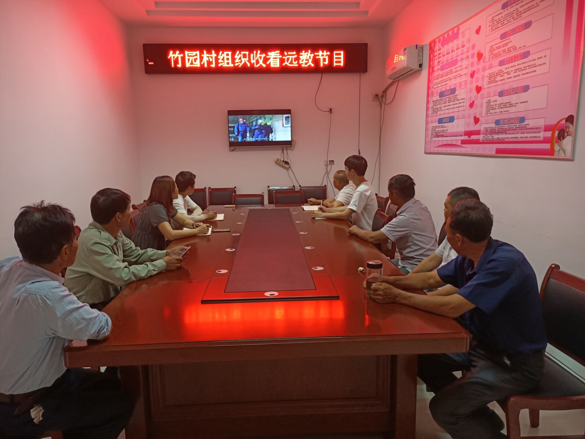 6月6日,竹園村黨支部組織村兩委成員、部分黨員和群眾收看遠程教育節目。