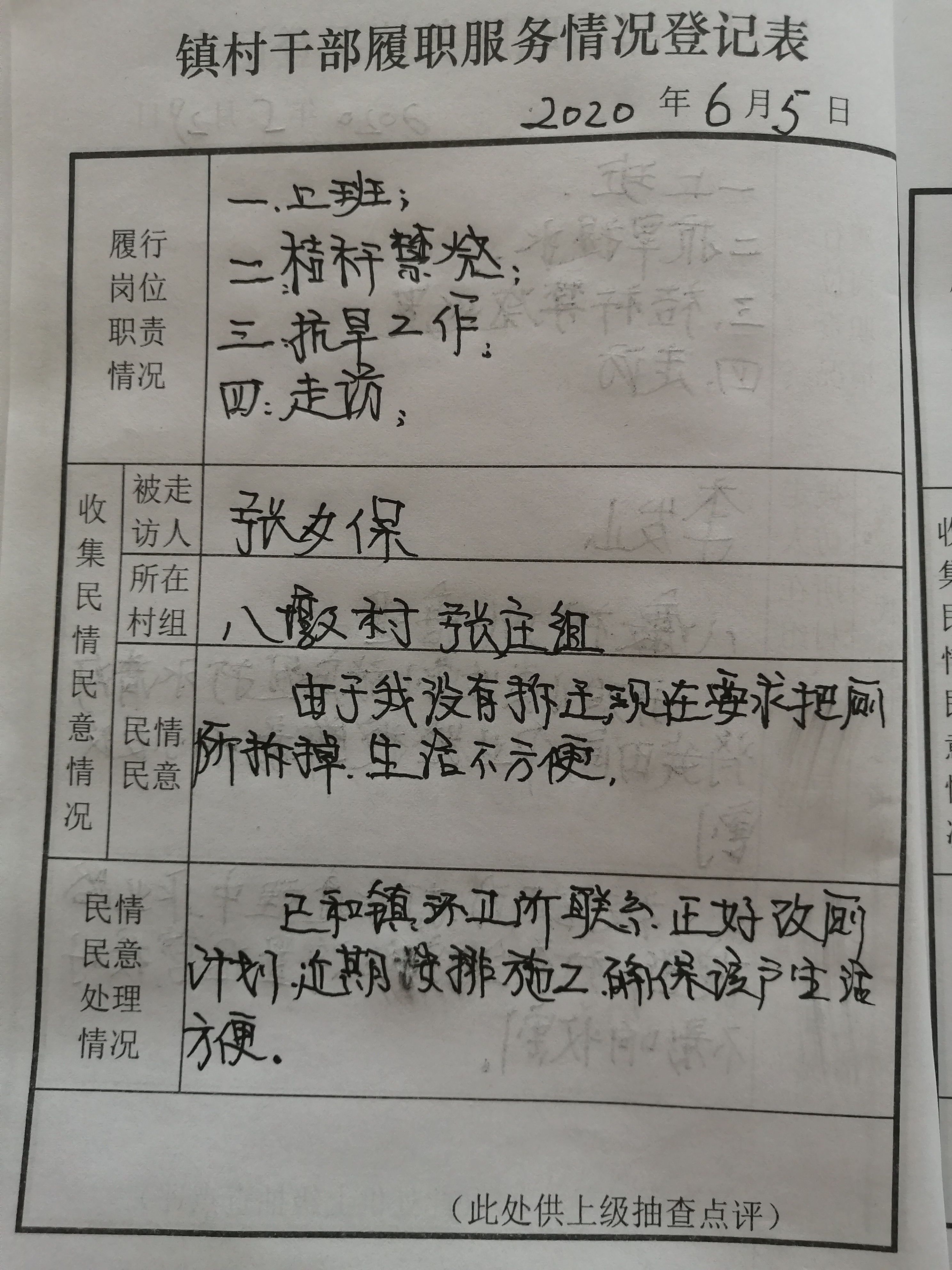 八墩村書記主任民情日志