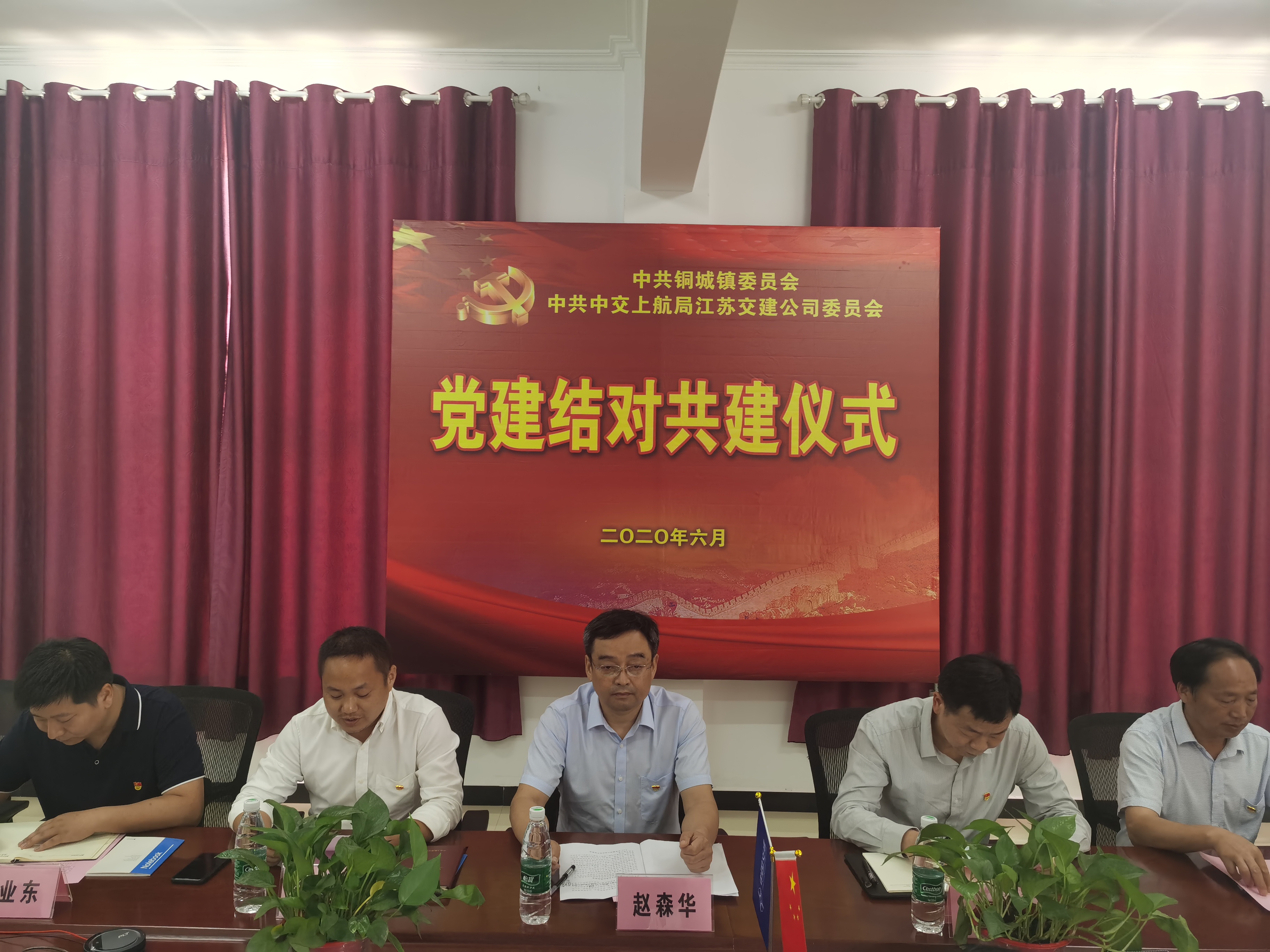 為牢固樹立綠水青山就是金山銀山的理念,進一步推進古銅龍河水環境整治工程,6月19日下午,銅城鎮黨委與中交上航局江蘇交建公司黨委開展以“堅持黨建引領,打造綠水青山、造福古鎮人民”為主題的黨建結對活動。鎮黨委書記趙森華、項目方公司黨委書記楊新、鎮人大副主席陳善祥、鎮組織委員陳業東共同出席活動。