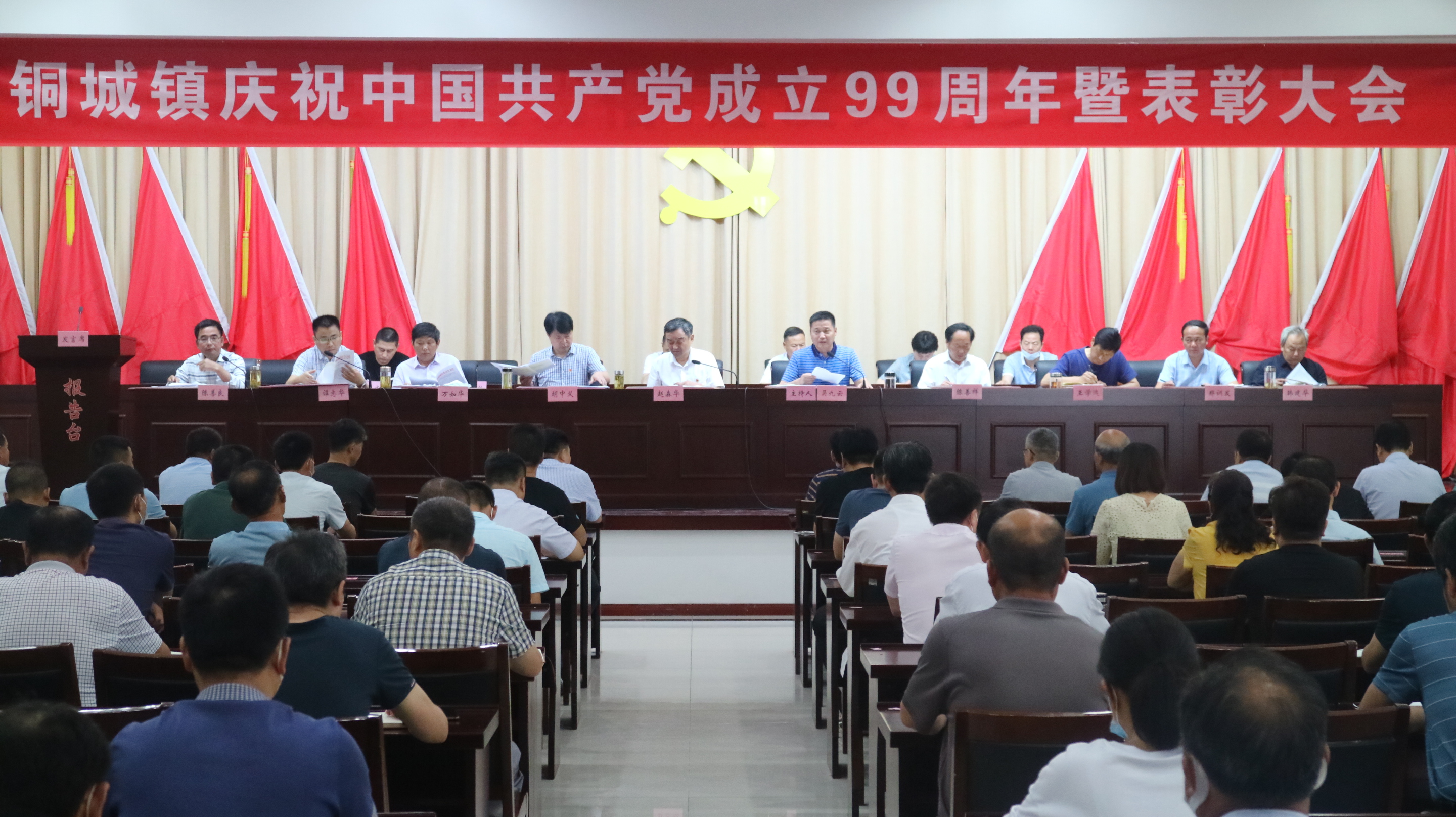 為慶祝中國共產(chǎn)黨成立99周年,同時(shí)激勵(lì)先進(jìn),表彰典型,6月28日上午,銅城鎮(zhèn)召開“振興銅城、發(fā)展為民”暨慶祝中國共產(chǎn)黨成立99周年“七一”表彰大會(huì)。會(huì)上,宣讀了《關(guān)于表彰全鎮(zhèn)先進(jìn)基層黨組織等先進(jìn)典型的決定》,12家先進(jìn)黨組織、99名優(yōu)秀黨員、10名學(xué)習(xí)強(qiáng)國先進(jìn)個(gè)人、10家學(xué)習(xí)強(qiáng)國先進(jìn)單位、422名移風(fēng)易俗先進(jìn)個(gè)人及10家移風(fēng)易俗先進(jìn)集體受到表彰。