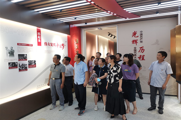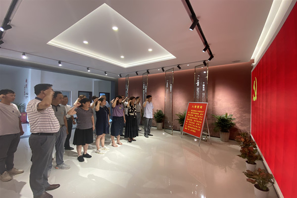 在新街鎮黨性教育館,解說員通過館內"薪火相傳"、"勠力同心"、"日新月異"、“明德惟馨”四個篇章向黨員們詳細介紹了新街鎮的發展歷程以及特色工作,以本土挖掘的高莊阻擊戰紅色故事和本地清代孝女姚孝貞、當代孝子吳尚志的故事為黨員們展現了新街濃厚的歷史人文底蘊,讓大家在重溫革命歷史中感悟共產黨人的初心,在觀看各類道德模范事跡中感受先進人物的正能量。隨后,面對館內鮮艷的黨旗,全體人員在重溫入黨誓詞中堅守初心使命,堅定理想信念,增強黨性修養。