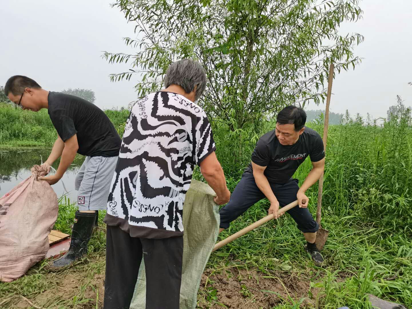 自今年六月份以來雨水不停,河道水位線步步緊逼警戒線,黨總支副書記董福成每天早晚都要到村里各個電站和涵閘查看情況。7月14日早上七點,他在查看水情的路上發(fā)現(xiàn)陸家澗新建涵閘發(fā)生滲漏現(xiàn)象,河水直往農(nóng)田倒灌,如果不及時處理,將有五千畝農(nóng)田受到影響。于是他組織村里防汛小分隊,帶上鐵鍬和編織袋爭分奪秒裝泥袋,另外兩名擅長水性的黨員潛入水底用泥袋堵住漏洞。受他們影響,附近的村民們紛紛加入到此次防汛行動中,有的幫忙拎口袋、有的幫忙鏟泥土……最終共有12人參與其中。在大家共同的努力下,上午九點漏洞全部堵上,險情化解。