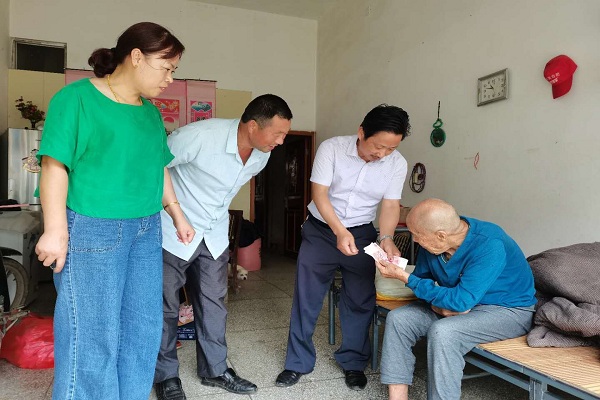 7月18日上午,村總支書記蔡萬余帶領班子成員來到聯西組困難老黨員黃順智家中,為他送上300元慰問金,并與老黨員進行親切交流,對老人目前的身體情況和生活狀況進行了深入細致的詢問,希望他能保重身體、健康長壽,并叮囑老人有什么困難、建議要及時向村反映,同時感謝他前半生為村發展所作出的貢獻。