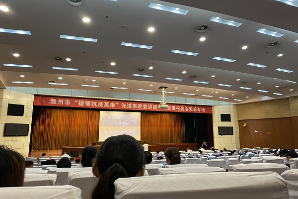 7月17日,滁州市“援鄂抗疫英雄”先進事跡宣講團巡回宣講報告會在市政府二樓報告廳舉辦,沃公社區安排部分工作人員參加了此次宣講報告會。