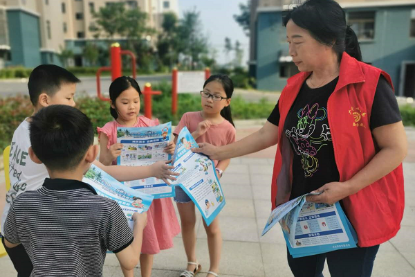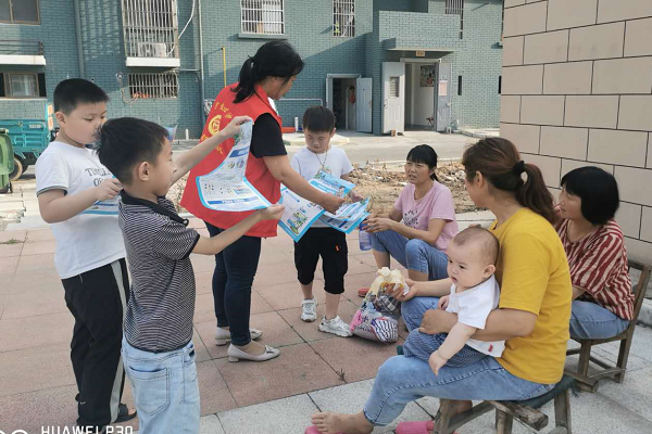 志愿者們走進小區來到廣場,和小朋友們進行交談。小朋友們防溺水知識你們知道嗎?孩子們天真的笑著說知道、知道,就是不能到河邊去游泳,不能到水邊去玩,我們學校老師在上課的時候已經告訴我們了。阿姨今天也是來宣傳防溺水知識的,現在給你們每一個小朋友發一張宣傳畫,你們可以看看,今天我們不但要把預防溺水宣傳知識告訴你們,還要告訴你們的家人。請帶我去找你們媽媽吧。