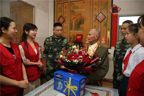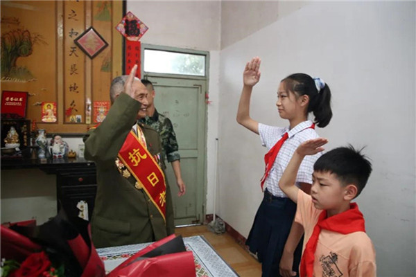 2020年7月18日下午,室外小雨淅淅瀝瀝,在年逾九旬的安徽天長籍抗日老戰士李元忠家中,志愿者們簇擁著老戰士圍成一圈,聽故事,印初心。“那次的戰斗打得很激烈,在敵人的機槍掃射下,我們成功地炸掉了暗堡,可是排長和五個兄弟都犧牲了,他們沒有看到勝利的那一天,我永遠也忘不了他們。”說到這里,李元忠低下了頭,聲音有些哽咽。