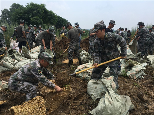 21日上午,官兵們發揚不怕吃苦、連續奮戰精神,又奉命趕往全椒縣武崗鎮荒草一圩,承擔3處疊沙包堵管涌和清除2公里長圩堤雜草任務。截至目前,圓滿完成當天抗洪搶險各項任務。(曹基 胡永慶)