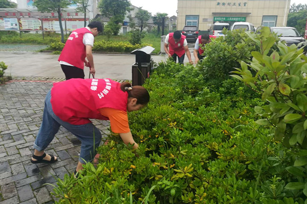 活動中,志愿者們冒著蒙蒙細雨彎腰認真除草、清理垃圾、雜物,不忽略每個角落,充分發揮志愿者不怕臟、不怕累、不怕苦的奉獻精神,并調侃到:“除草就像掃黑除惡,要不停的敲打,不能讓它長大長壯,越冒頭越要除......”兩個多小時的努力換來了干凈平整的綠地,更換來了村企之間的默契與同心。