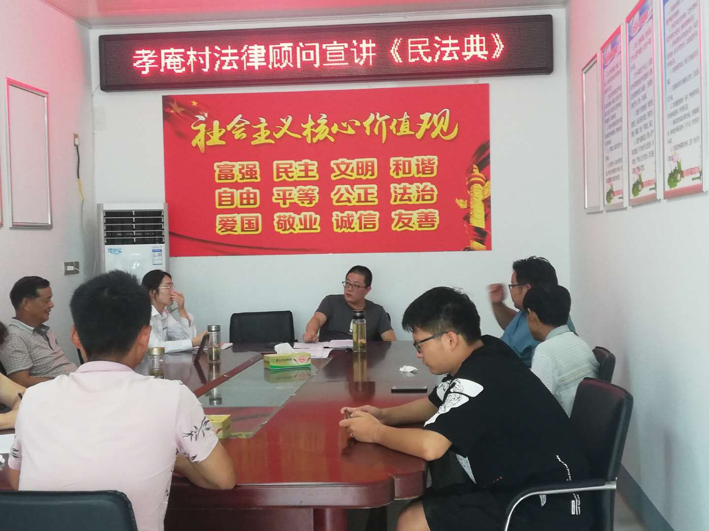 8月3日下午,法律顧問梅曉軍律師到孝庵村為黨員群眾講一堂《民法典》法治課。
