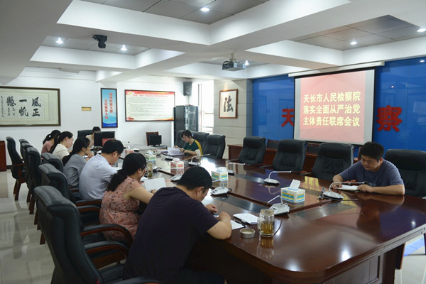 為貫徹落實全面從嚴治黨要求,切實把管黨治黨責任和全面從嚴治黨各項工作任務落到實處,8月10日,天長市檢察院組織召開落實全面從嚴治黨主體責任聯席會議,黨組成員、政治部主任呂穎主持會議,各業務條線負責人、駐院紀檢監察組參加會議。