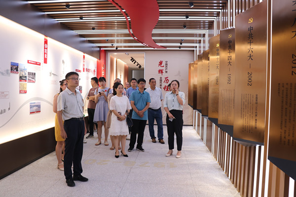 學員們在講解員的帶領下認真觀看了館內的薪火相傳、日新月異、勠力同心等6個展廳的陳設,仔細聆聽了新街鎮高莊阻擊戰的故事,共同感受中國共產黨99周年的光輝歷史,了解了新街鎮小微權力清單制度以及股改、醫改等特色工作的成功經驗。