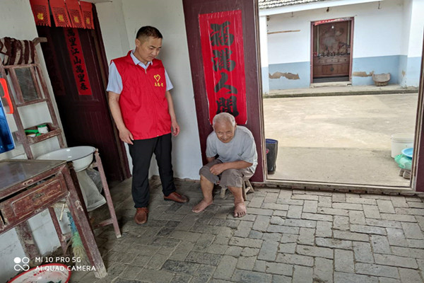 8月14日上午,東風村組織志愿者上門看望五保戶、殘疾人。