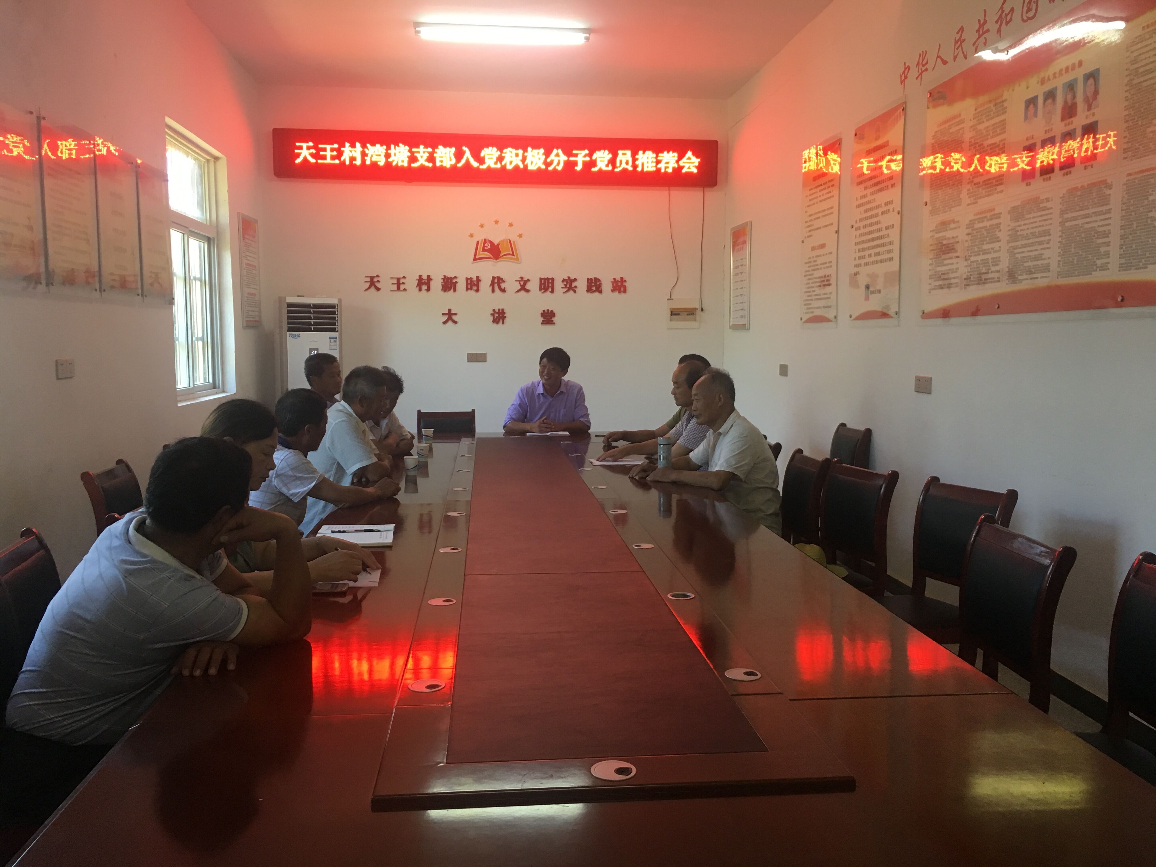 2020年8月17日,天王村灣塘支部在村會議室組織召開了灣塘支部入黨積極分子黨員推薦會,目前天王村有戴其明同志遞交了入黨申請書,但還沒確定為入黨積極分子。